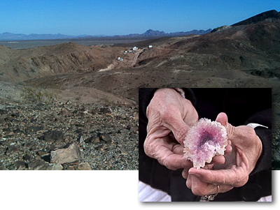with Nancy Hill holding an amethyst flower (inset). Site photo: fireagate.us.